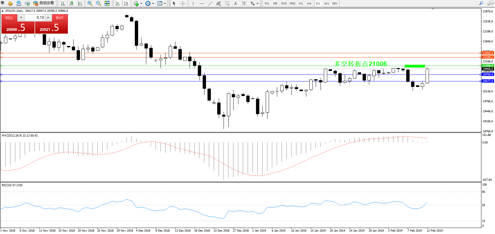 交易策略:21006下方看跌,目标20705、20447