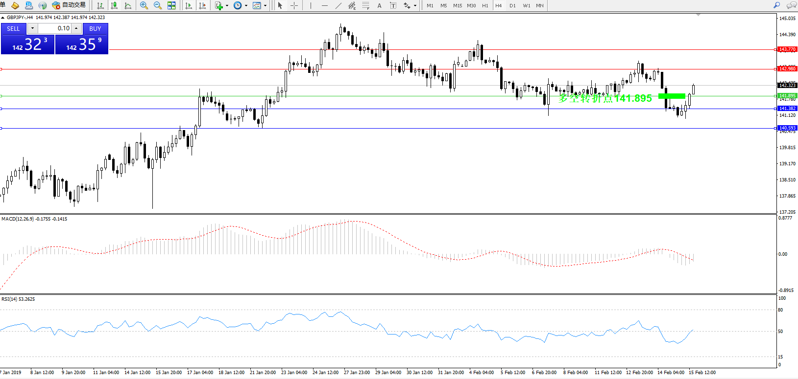 交易策略:141.895上方看涨,目标142.980、143.770