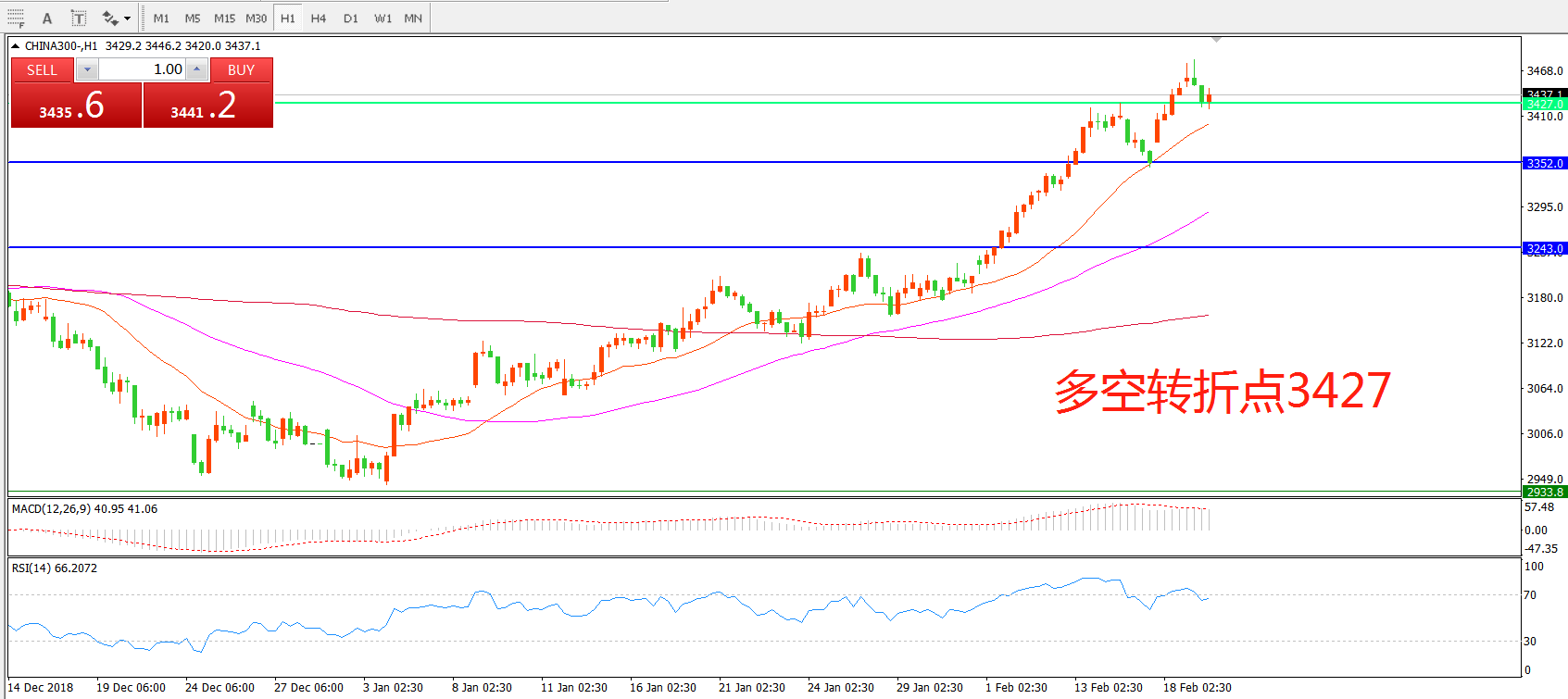 多空转折点:3427.00