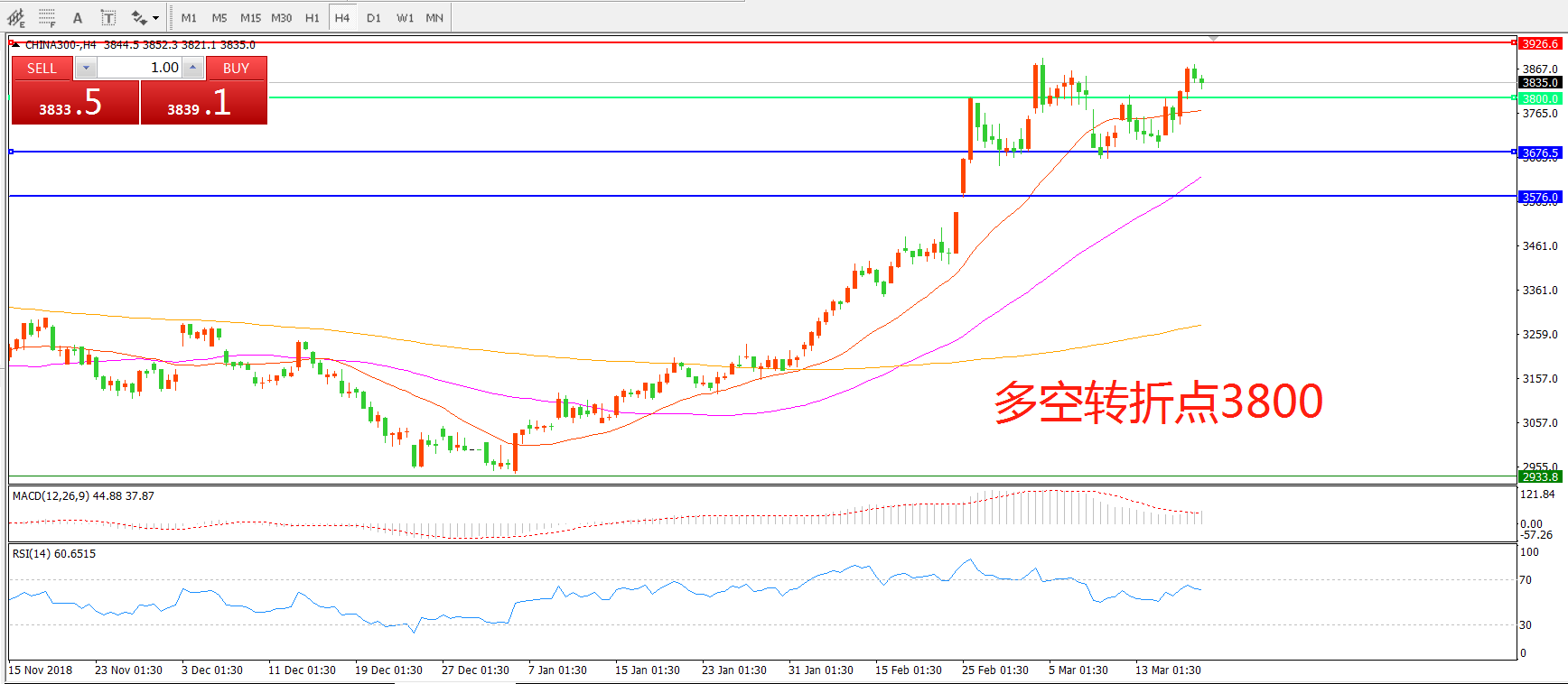 多空转折点:3800.00