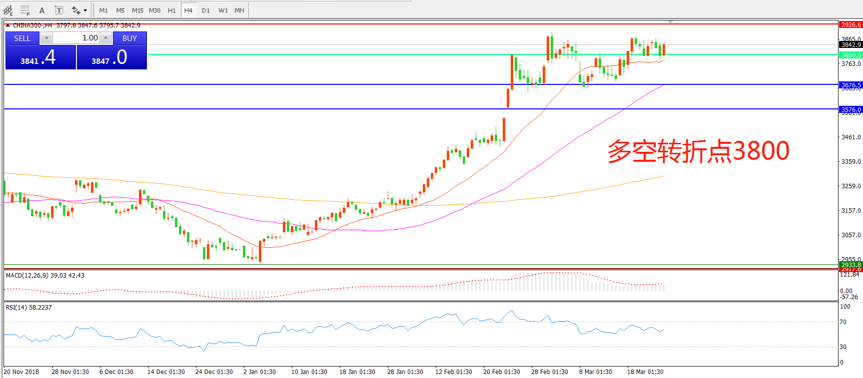 多空转折点:3800.00