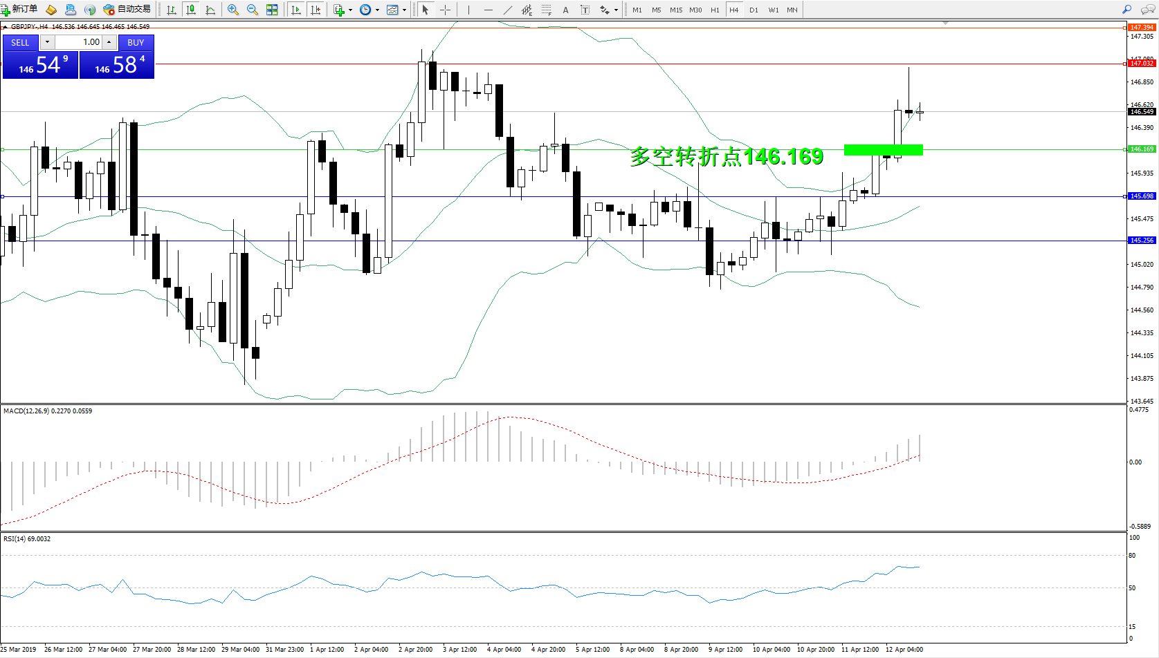 交易策略:146.169上方看涨,目标147.032147.394