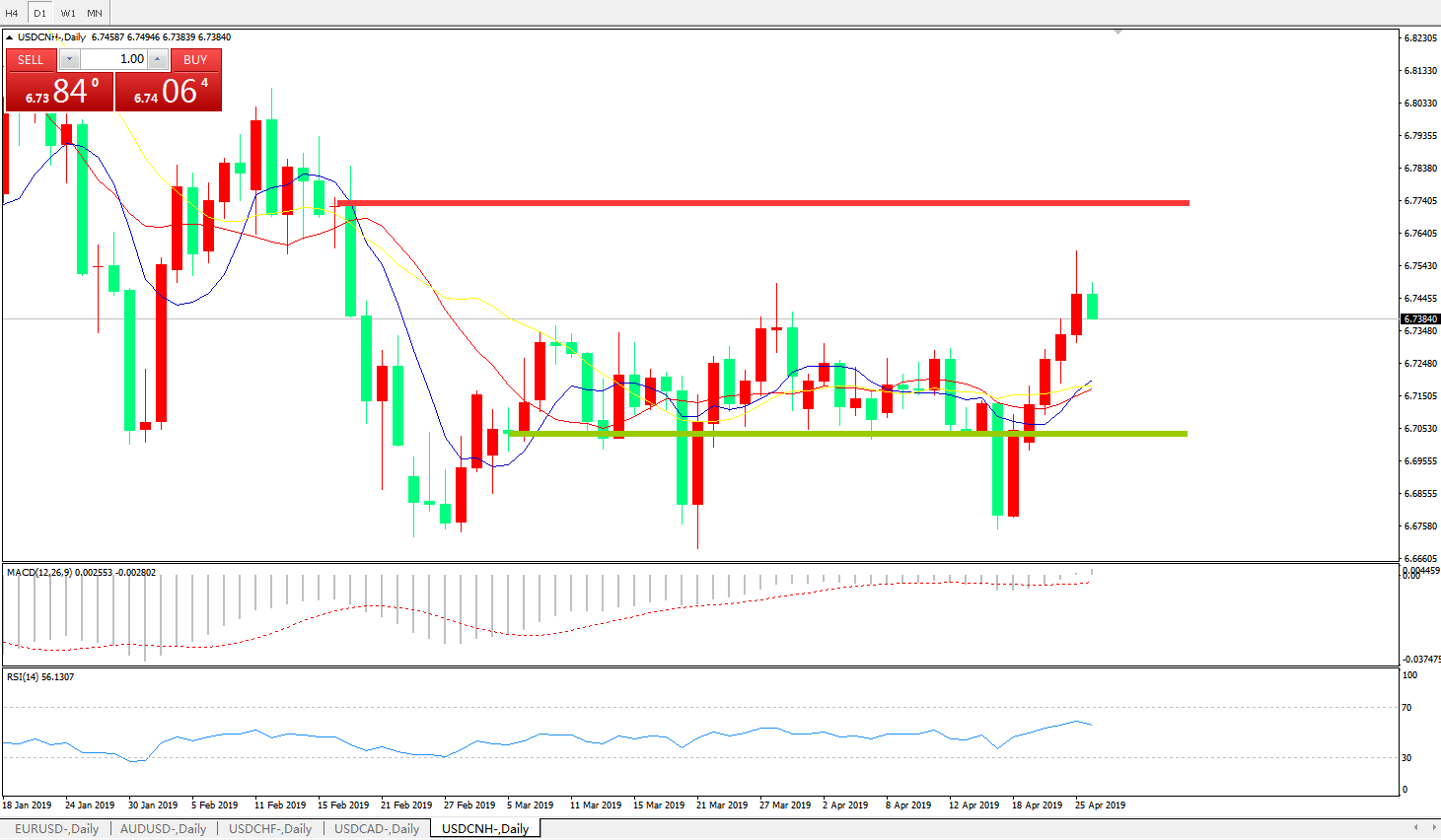 备选策略: 6.6990之下,看跌,目标价位为6.6730,然后为6.6325