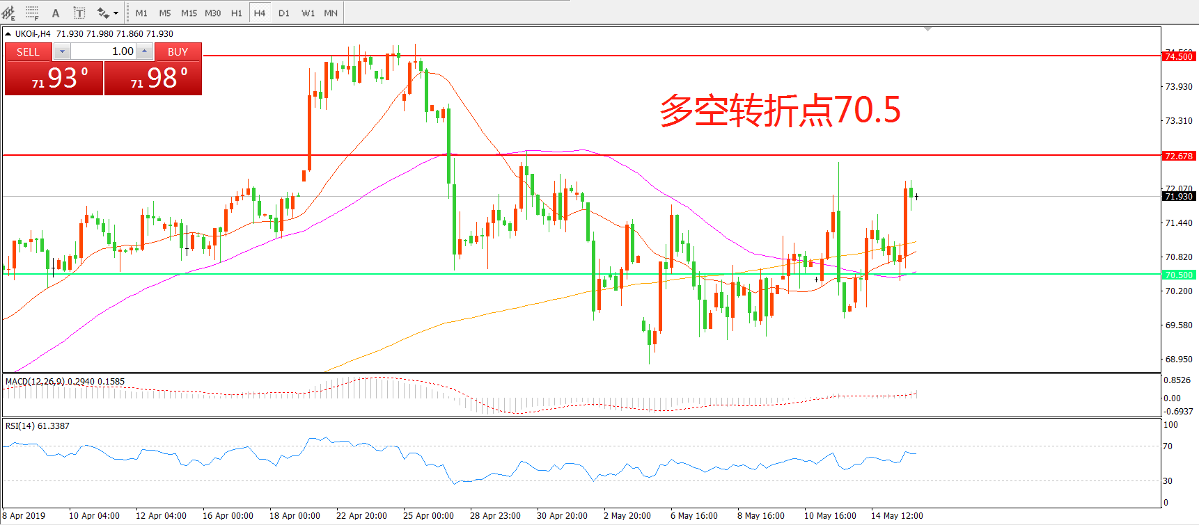 多空转折点:70.50