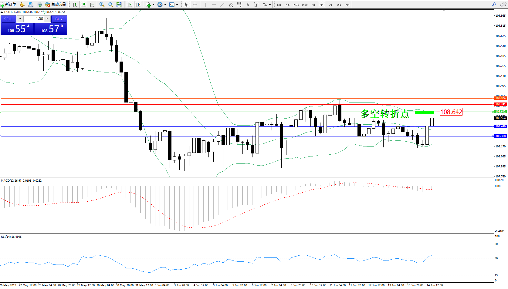 交易策略:108.642下方看跌,目标108.440108.308