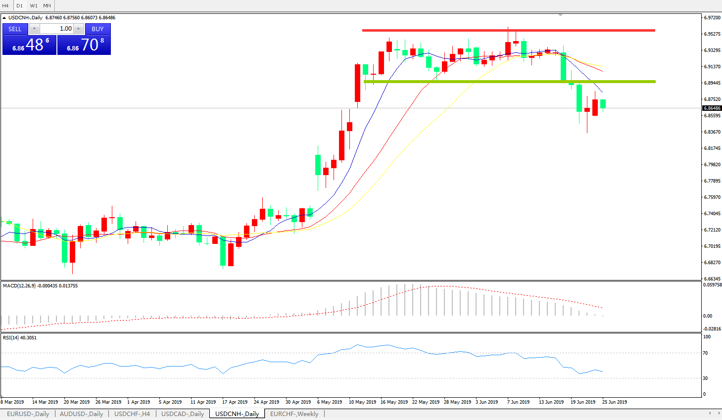 交易策略6.8880之下,看跌,目标价位为6.8100,然后为6.7600