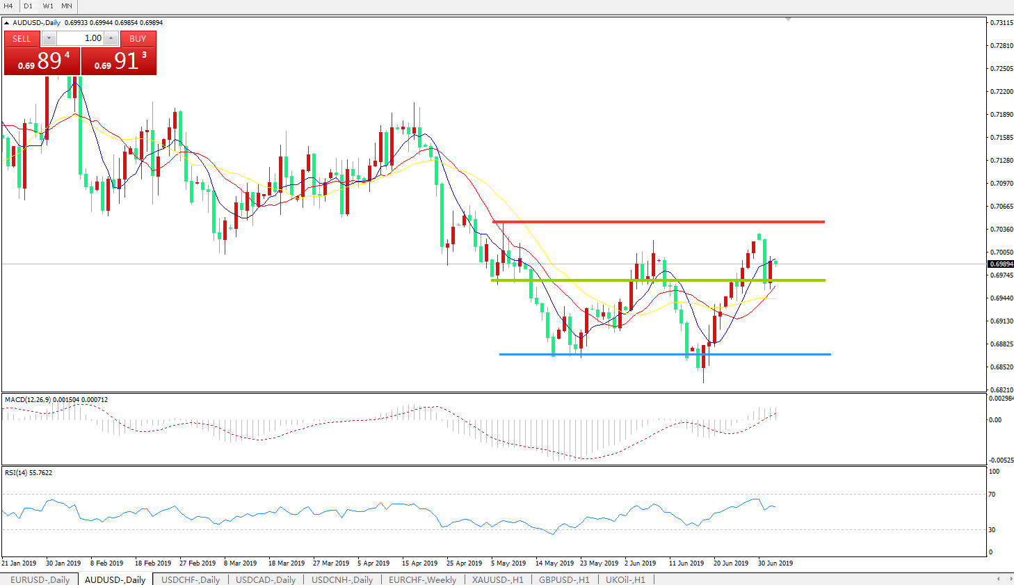 交易策略:0.6960上方看涨,目标0.70200.7100