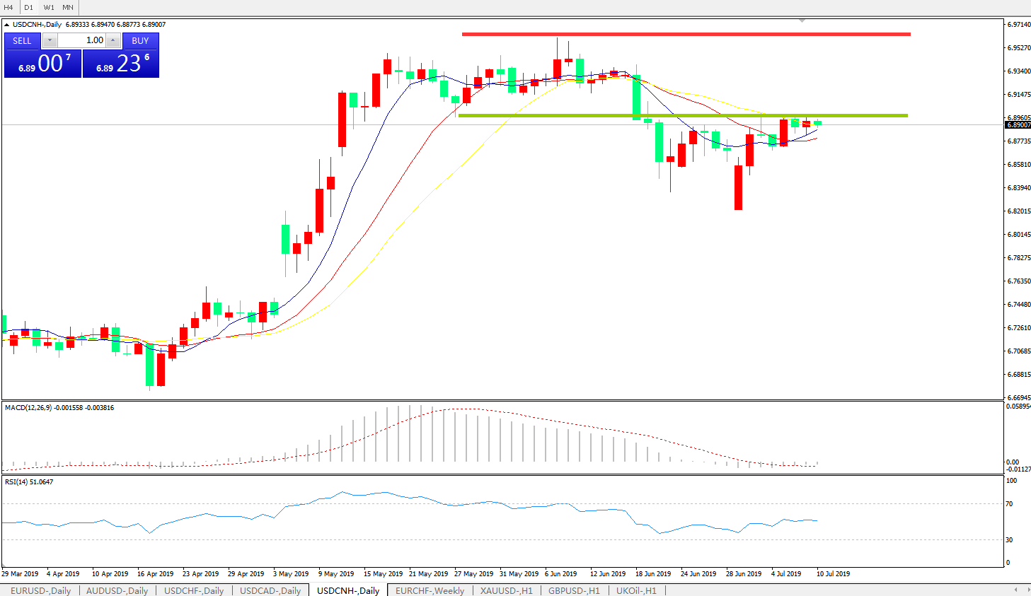 备选策略: 在6.9000之上,看涨,目标价位为6.9600,然后为6.9800。