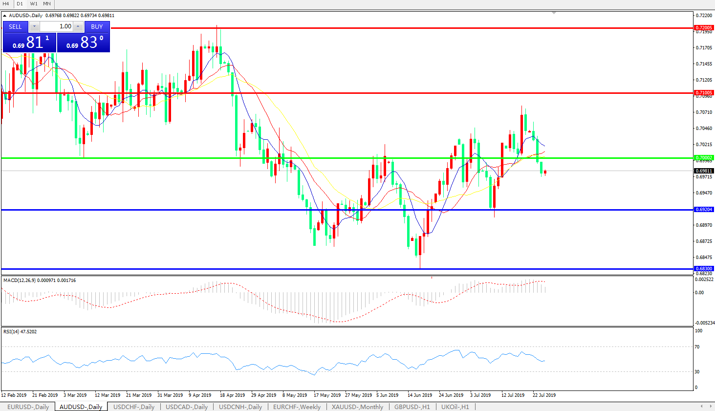 备选策略:0.7000上方看涨,目标0.7100、0.7200