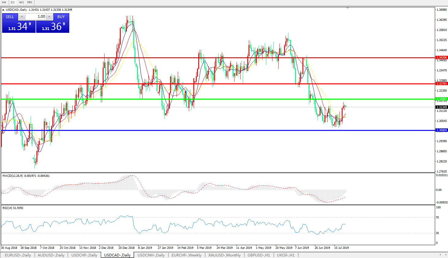 美元兑加元USDCAD    日线图:
