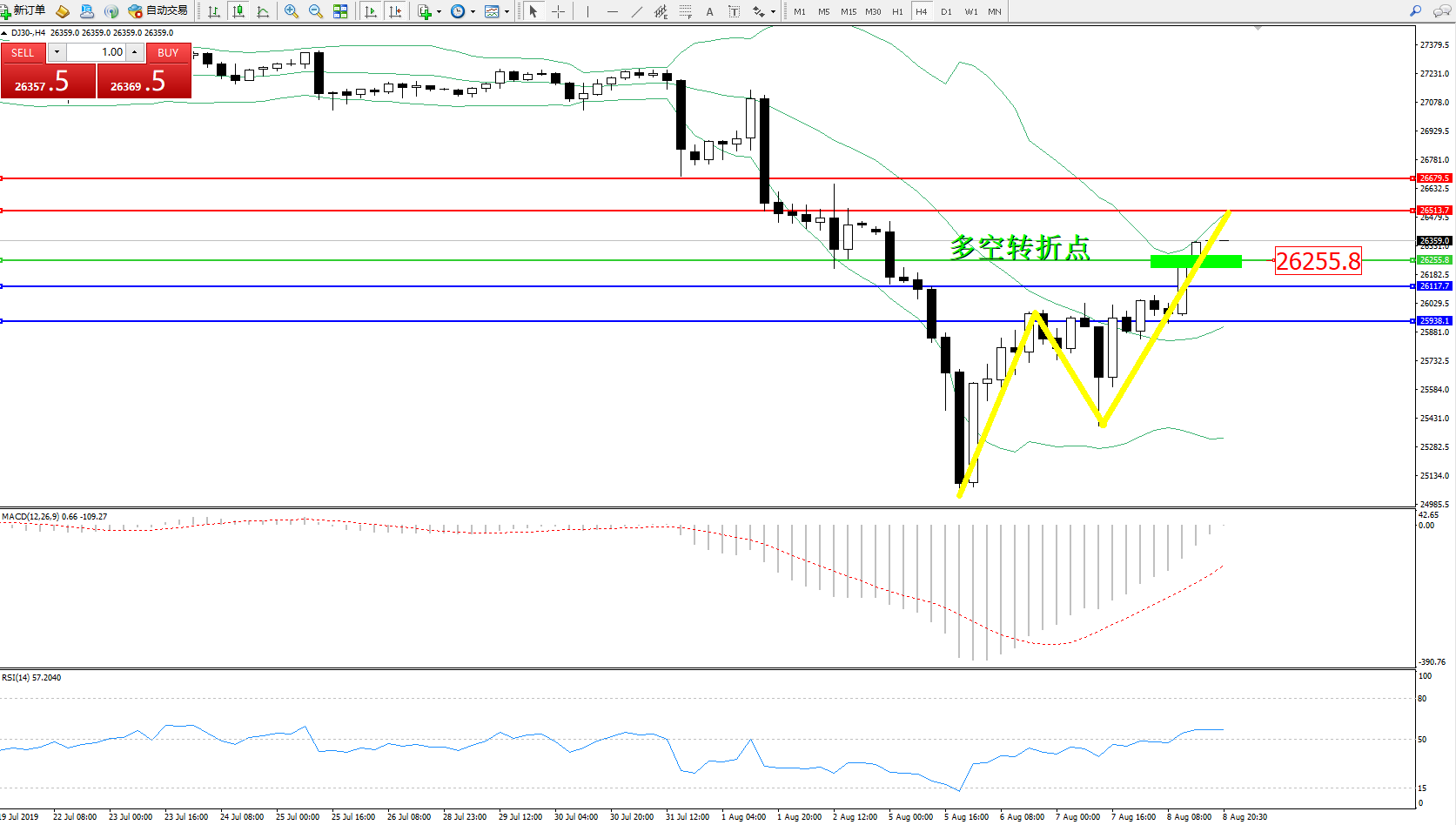 道琼斯指数88日(周四)收盘上涨371.50点,涨幅1.43%,报26378.53点。美国至83日当周初请失业金人数意外录得下滑,暗示尽管经济增速放缓,劳动力市场维持强劲。而接下来数周内,贸易问题将受到关注,因其导致经济前景黯淡,金融市场动荡,且正在蔓延到劳动力市场。由于贸易问题,金融市场已经完全计价美联储将在下个月再次降息的可能性,且对降息幅度达50个基点的预期也在上升。尽管近期美联储在年内再度降息50基点的预期升温,但并不能撼动美元指数的上行趋势。