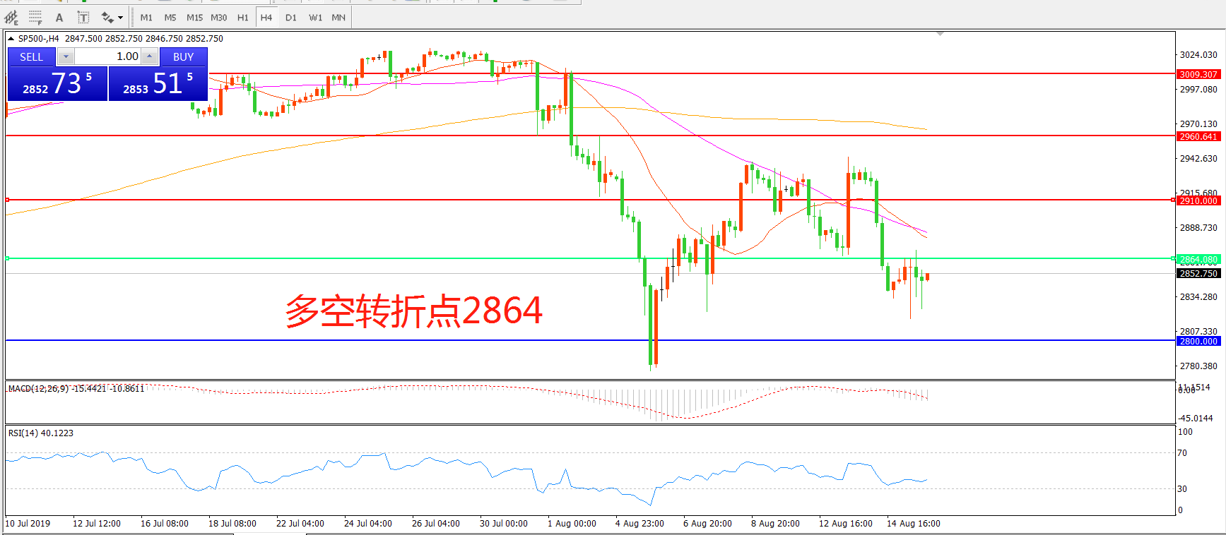 多空转折点:2864.00