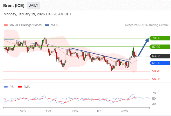 在 61.50 之上,看涨,目标价位为 67.00 ,然后为 70.00 。