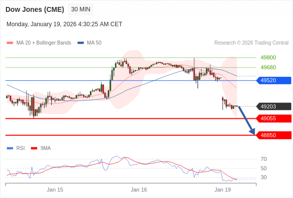 在 49520 之下,看跌,目标价位为 49055 ,然后为 48850 。