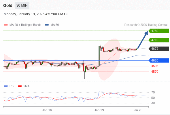 在 4620 之上,看涨,目标价位为 4710 ,然后为 4750 。