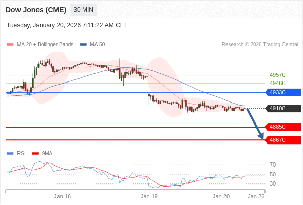 在 49330 之下,看跌,目标价位为 48850 ,然后为 48670 。