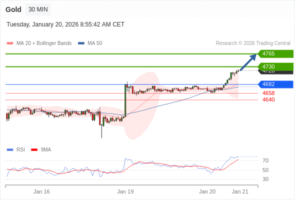 在 4682 之上,看涨,目标价位为 4730 ,然后为 4765 。