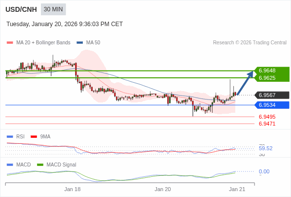 替代方案: 在6.9534以下,期待6.9495和6.9471。