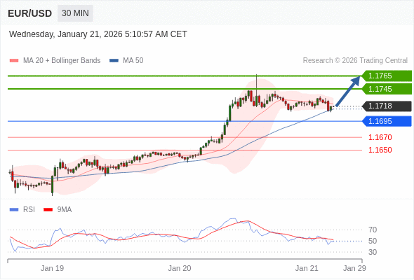在 1.1695 之上,看涨,目标价位为 1.1745 ,然后为 1.1765 。