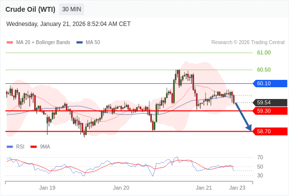 在 60.10 之下,看跌,目标价位为 59.30 ,然后为 58.70 。