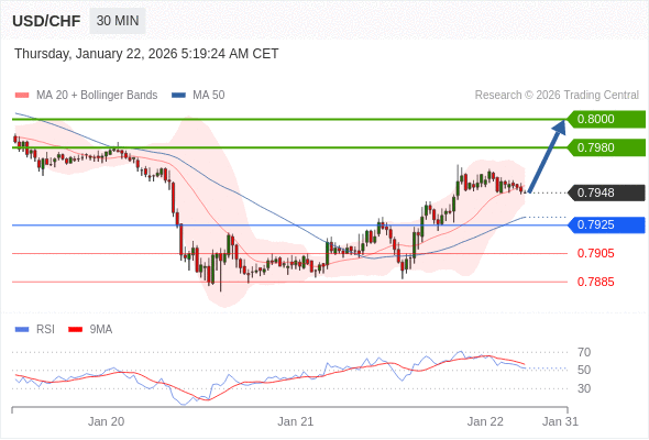 在 0.7925 之上,看涨,目标价位为 0.7980 ,然后为 0.8000 。