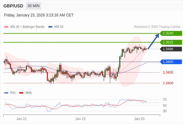 交易策略: 在 1.3460 之上,看涨,目标价位为 1.3515 ,然后为 1.3540 。