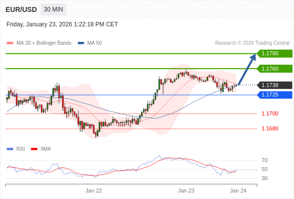 在 1.1725 之上,看涨,目标价位为 1.1760 ,然后为 1.1780 。