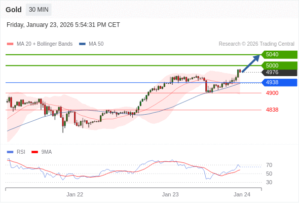 在 4938 之上,看涨,目标价位为 5000 ,然后为 5040 。