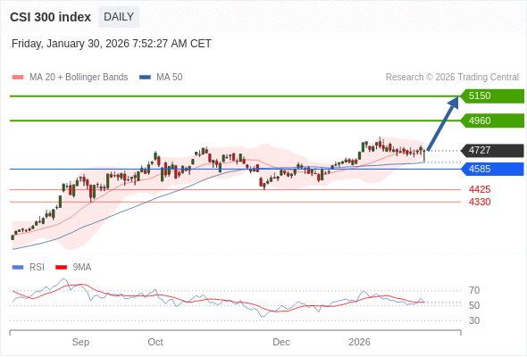 沪深300指数 短线: 在4585之上,看涨。