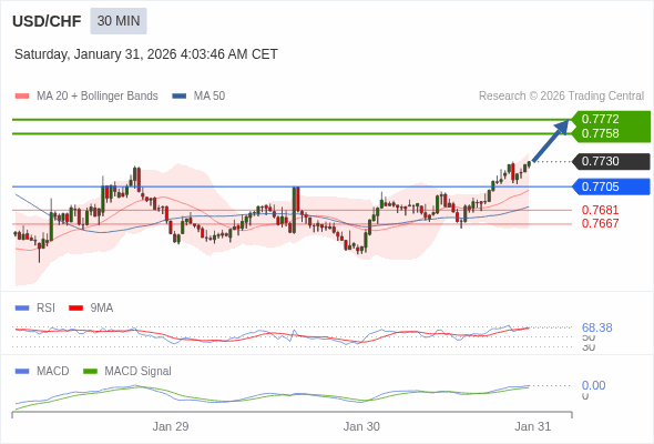 美元/瑞郎 当日内 : 看涨,当 0.7705 为支撑位。