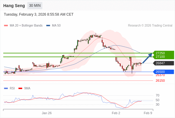 在 26500 之上,看涨,目标价位为 27100 ,然后为 27250 。