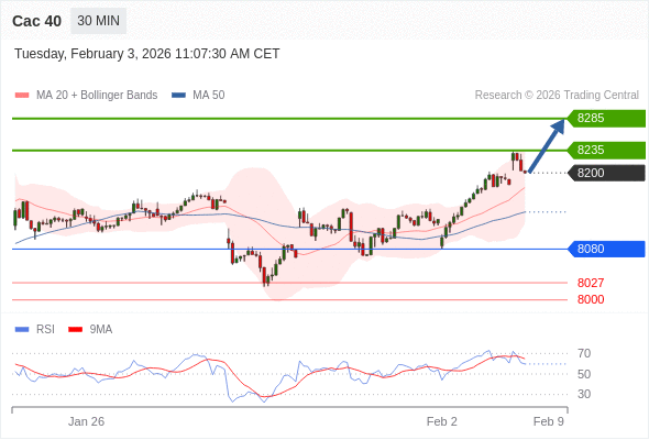 在 8080 之上,看涨,目标价位为 8235 ,然后为 8285 。