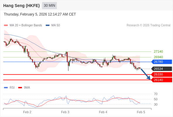在 26780 之下,看跌,目标价位为 26330 ,然后为 26140 。