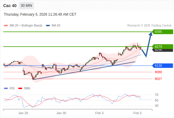 Cac 40 当日内: 上升趋势。