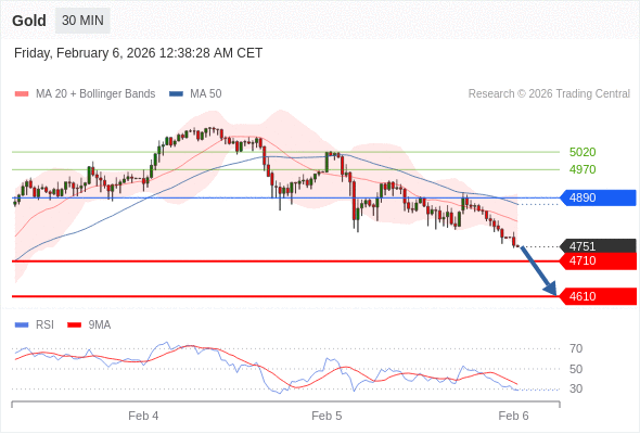 在 4890 之下,看跌,目标价位为 4710 ,然后为 4610 。