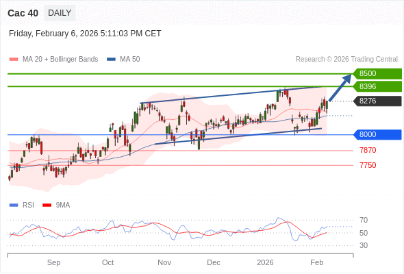 交易策略: 在 8000 之上,看涨,目标价位为 8396 ,然后为 8500 。