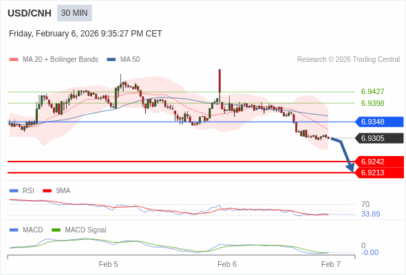 美元/人民币 当日内 : 看跌,在 6.9348 之下。