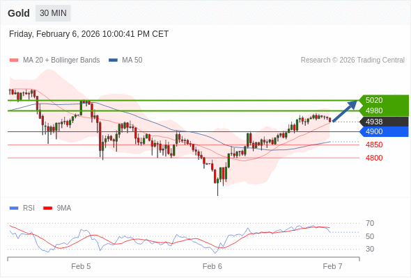 在 4900 之上,看涨,目标价位为 4980 ,然后为 5020 。