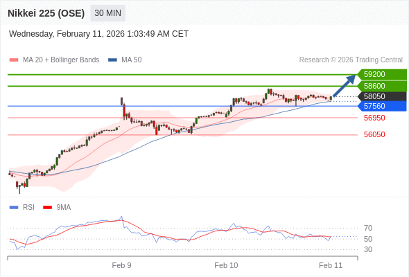 日经225股指期货 (OSE) 当日内: 目标位为58600。