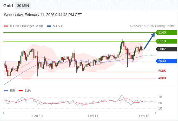 在 5040 之上,看涨,目标价位为 5110 ,然后为 5140 。