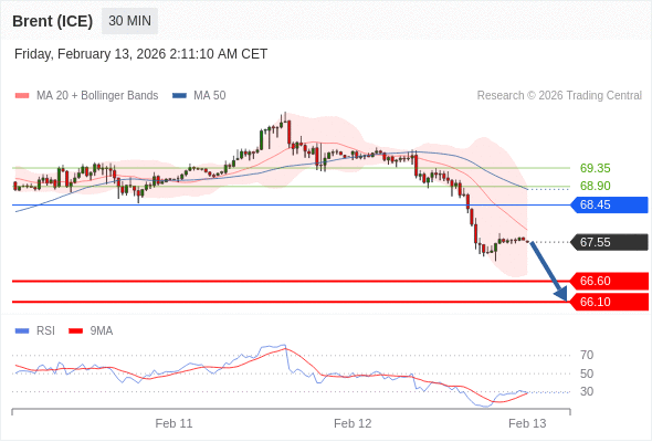 在 68.45 之下,看跌,目标价位为 66.60 ,然后为 66.10 。