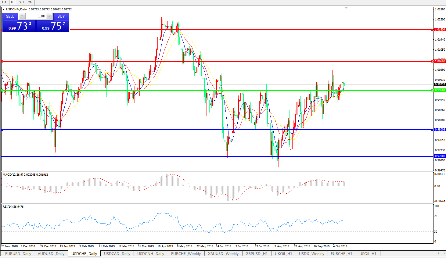 美元兑瑞郎USDCHF    日线