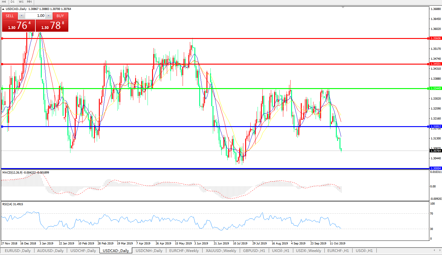美元兑加元USDCAD    日线图:
