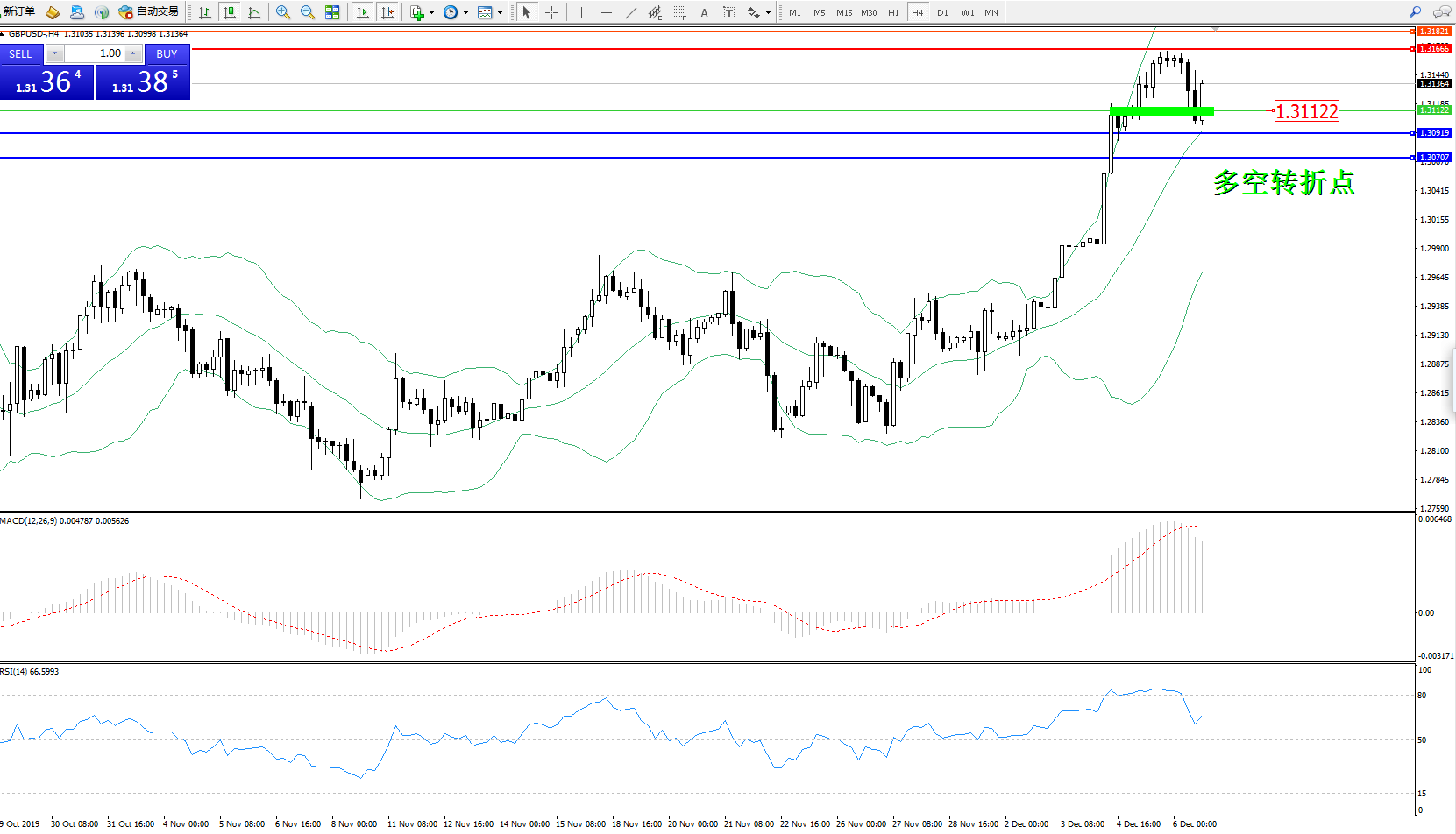 交易策略:1.31122上方看涨,目标1.31666、1.31821