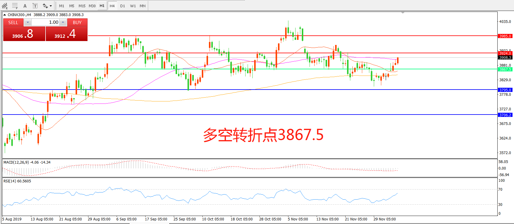 沪深300指数CHINA300 4小时图