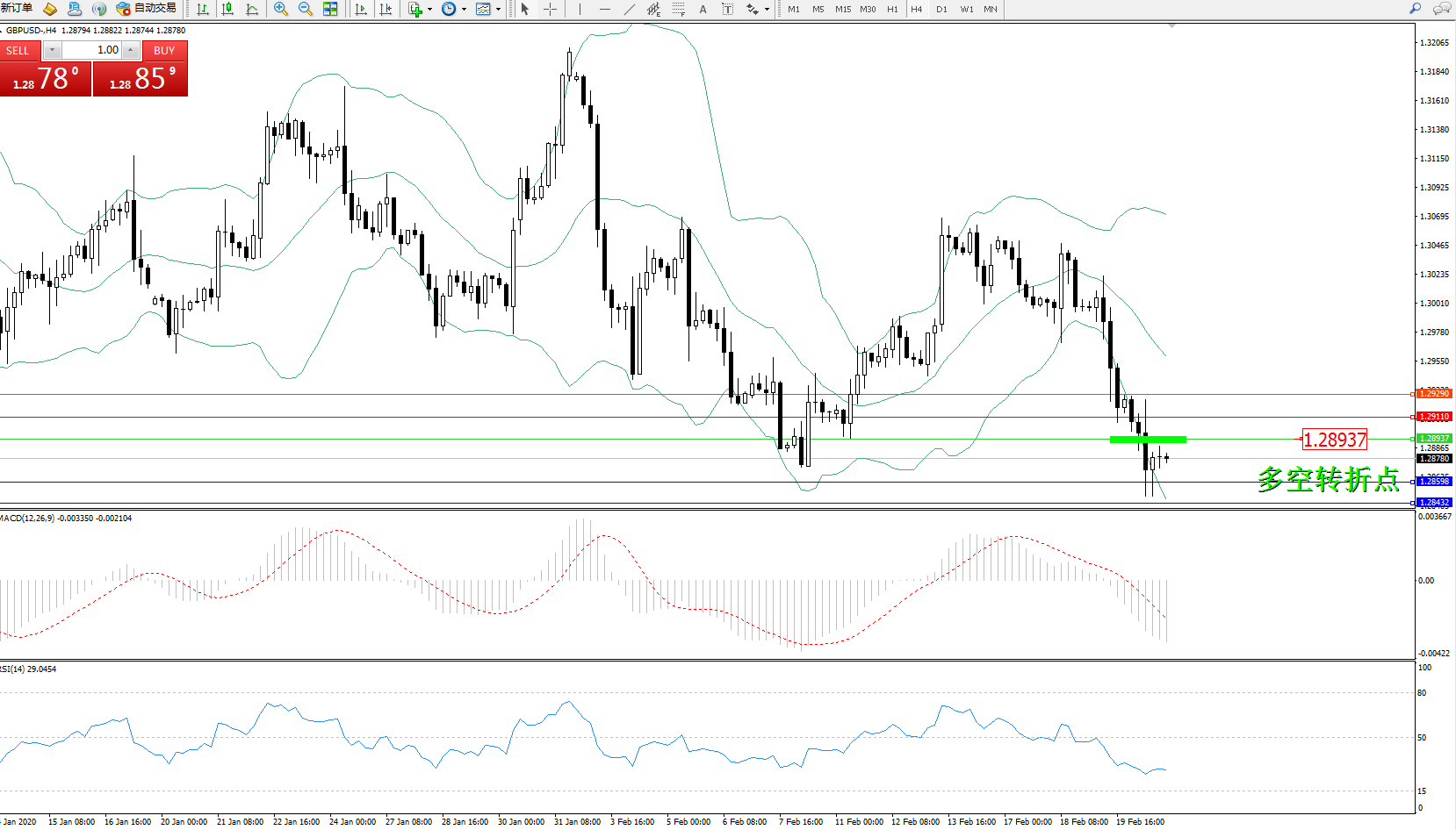 交易策略:1.28937下方看跌,目标1.285981.28432