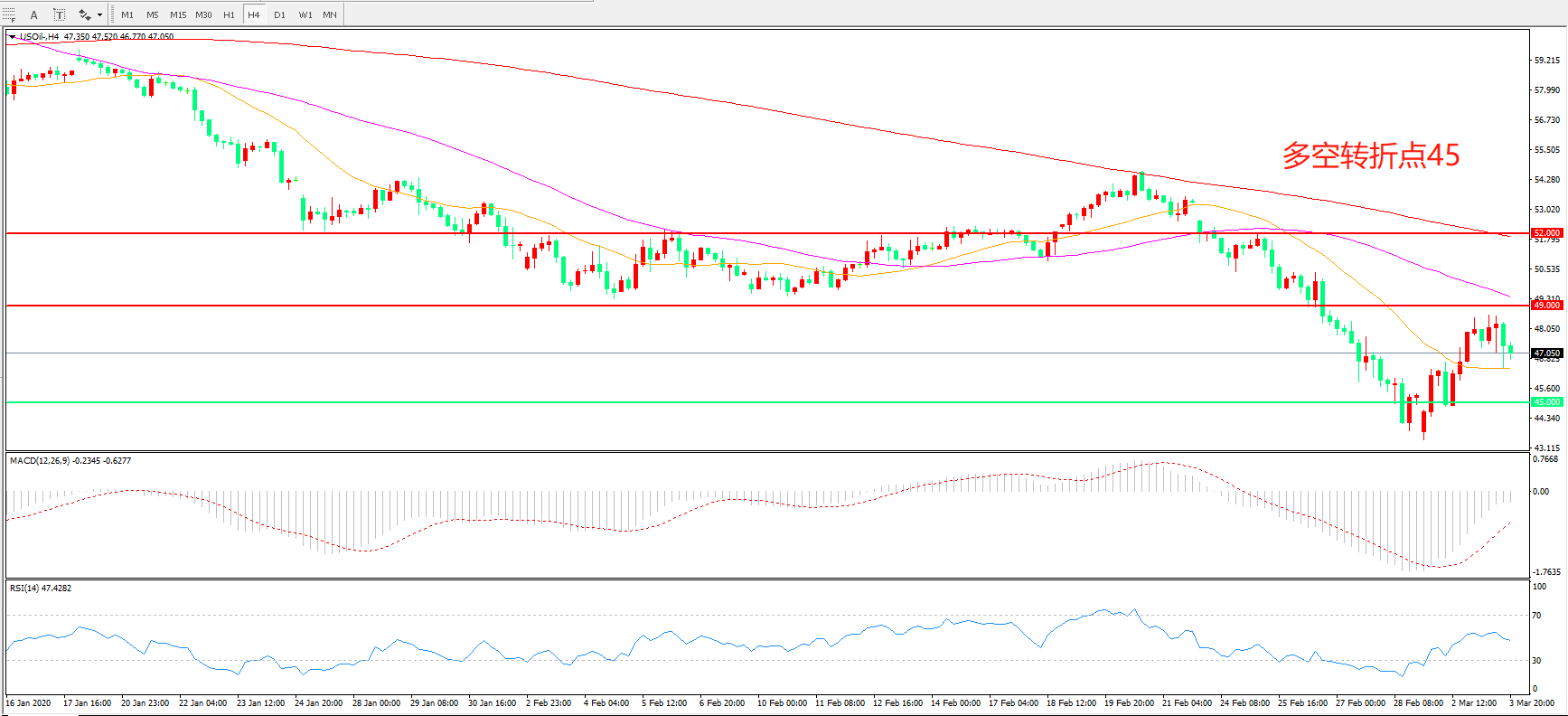 多空转折点:45.00
