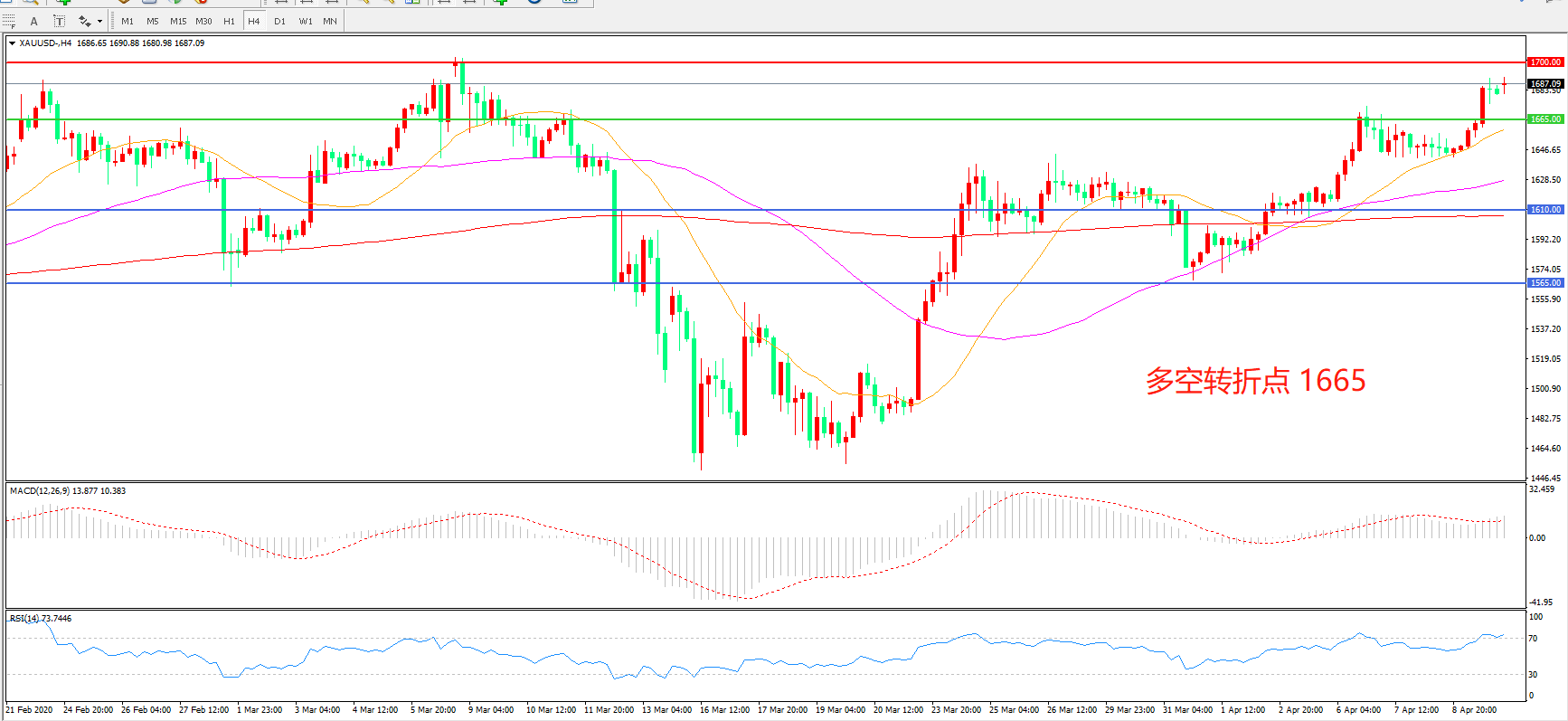 多空转折点:1665.00