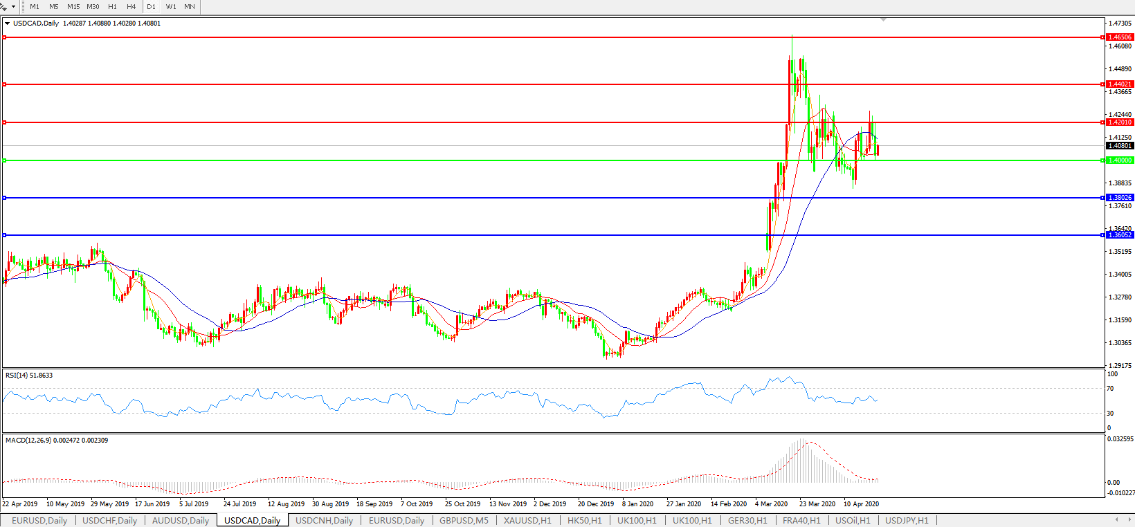 美元兑加元USDCAD    日线图: