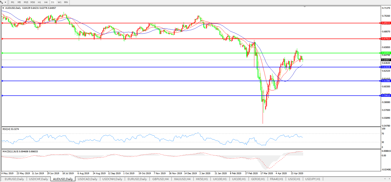澳元兑美元AUDUSD    日线图: